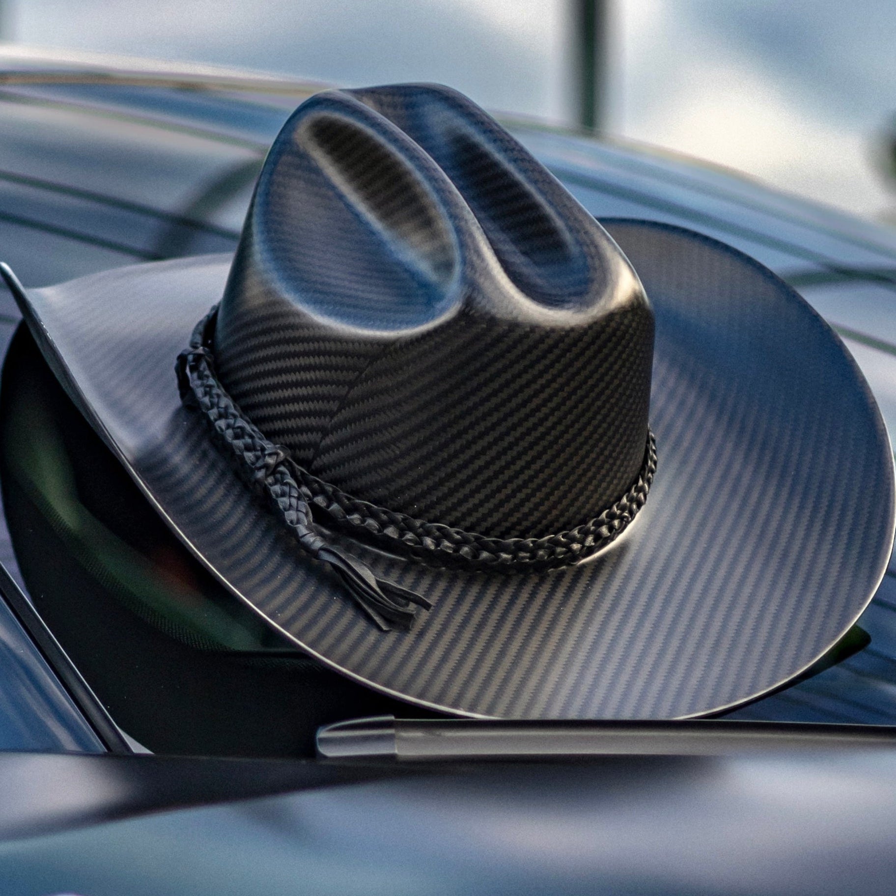 The WHISTLINDIESEL X NELSON RACING DESIGN full carbon fiber cowboy hat. Crafted entirely in the USA by Nelson Racing Design.