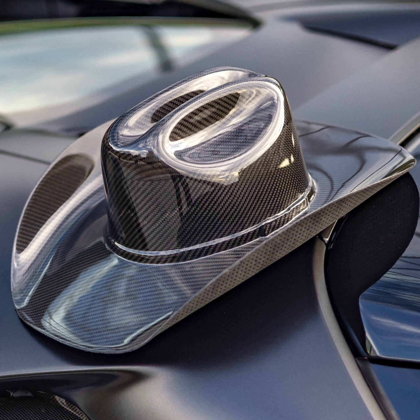 The WHISTLINDIESEL X NELSON RACING DESIGN full carbon fiber cowboy hat. Crafted entirely in the USA by Nelson Racing Design.